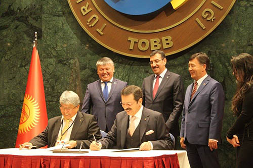 Также, в рамках бизнес-форума был заключен Меморандум о взаимопонимании между Союзом Торговых Палат и Бирж Турции и Торгово-промышленной палатой Кыргызской Республики. Документ предполагает сотрудничество в области содействия ТОВВ в вопросах стратегического развития, оптимизации деятельности Торгово-промышленной палаты КР.