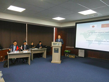 В свою очередь японская сторона представила презентацию по следующим темам: «Подготовка кадров, способствующих диверсификации промышленности», «Пищевая промышленность – перспективная отрасль экономического сотрудничества», «Наиболее масштабная в Японии комплексная выставка «Гастрономии» в отраслях продуктового ритейла, готовой еды и ресторанного бизнеса: FOOD TABLE in JAPAN 2018», «Повышение производительности труда и увеличение добавочной стоимости продукта за счёт механизации и автоматизации пищевых производств», «Удобство монорельса в горной области Кыргызской Республики» и «Способы и возможности выхода на продовольственный рынок Японии для производителей Кыргызской Республики». По словам японских предпринимателей, главными требованиями к импортируемой ими продукции являются: экологичность, отсутствие пестицидов и вредных добавок, пониженное содержание сахара, жирности, соли, а также новшество товара на японском рынке.
