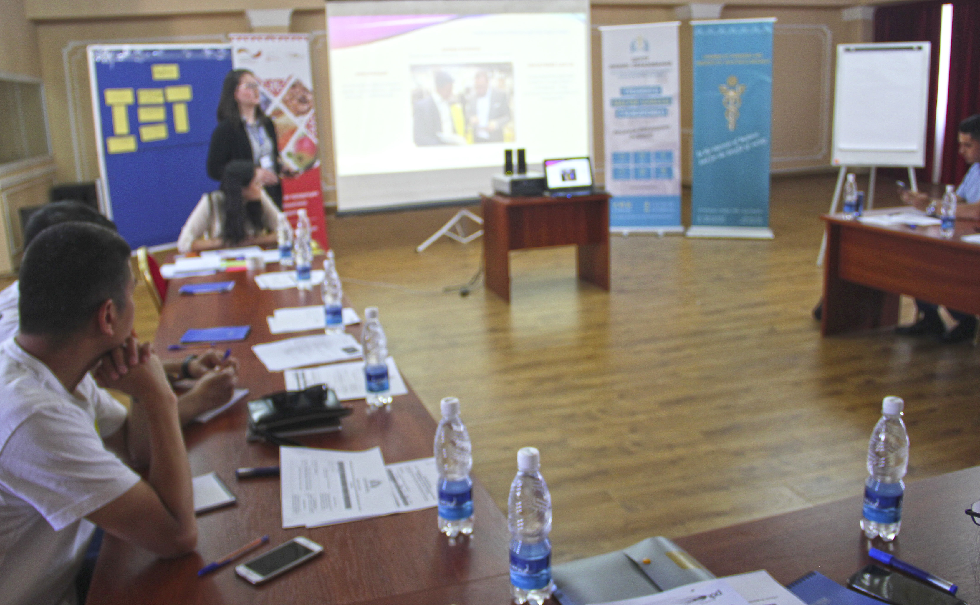 Сегодняшние спикеры тренинга: Умай Султанбек кызы - координатор рабочей группы по подготовке компаний к участию на международных выставках в рамках проекта IPD и GIZ (ТПП КР), члены рабочей группы Бермет Мукамбетова (ТПП КР), Валерия Набеева (ТПП КР), Эльвира Байжуманова (GIZ) информировали присутствующих о самом важном, что касается участия в международных выставках.