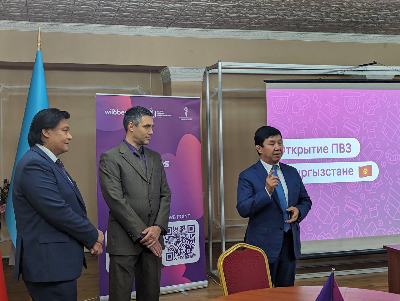 Эксперты компании ответили на вопросы участников и рассказали об условиях открытия пунктов выдачи заказов и перспективах развития бизнеса с Wildberries Встречу также посетил Президент ТПП КР Темир Сариев, который поздравил местное представительство Wildberries с официальным членством в Торгово-промышленной палате Кыргызстана. Кроме того, в ближайшее время компания подпишет меморандум о сотрудничестве с Центром обучения предпринимателей на базе ТПП КР, что позволит усилить образовательный компонент WB для местного бизнеса.